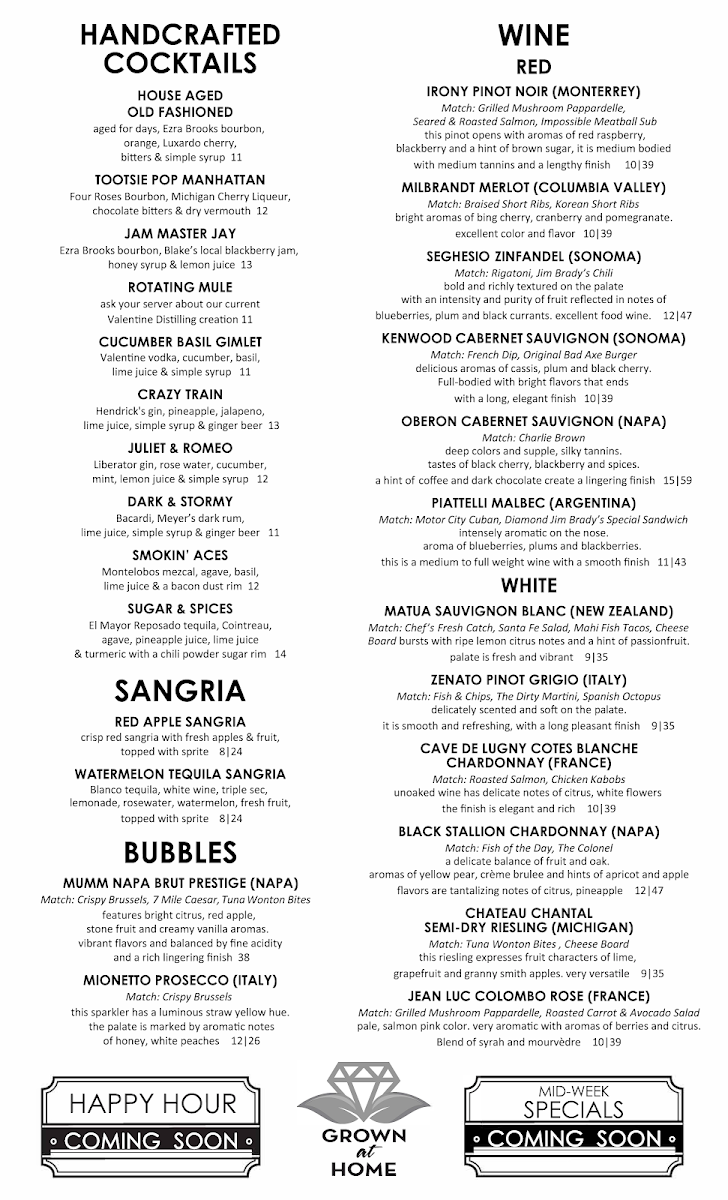 Delicately scented and soft on the palate. It is smooth and refreshing, with a long pleasant finish. Pairs well with our Fish & Chips, The Dirty Martini salad, or Spanish Octopus. 9/Glass or 35/Bottle