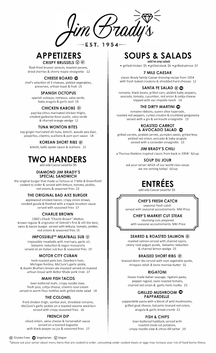 Welcome to Jim Brady's Royal Oak, a gem nestled in the heart of Royal Oak, Michigan. Located at 1214 S Main St, this renowned American restaurant is not just about dining; it’s about experiencing exceptional culinary delights in a vibrant atmosphere. With a focus on quality, variety, and service, Jim Brady's has rightfully carved out its reputation as a go-to spot for both special occasions and casual dinners.